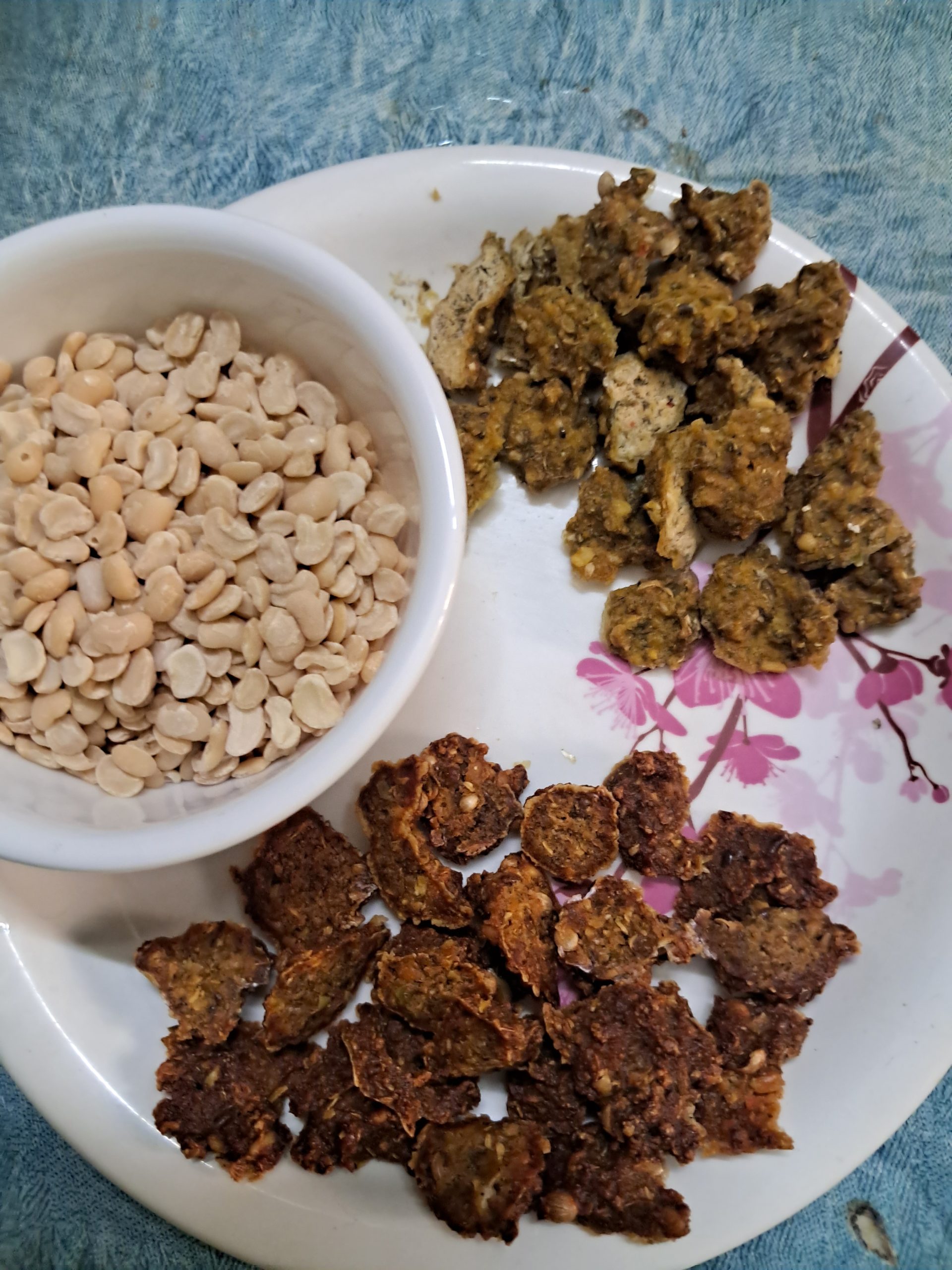 3).Remove the dough, mix thoroughly and drop small portions on a moistened cloth or plastic sheet.Keep it under sun for 2 to 3 days till they are well dried.
