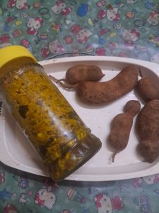 Fresh raw tamarind fruit – 175 gms, washed thoroughlly, dried with a clean dry cloth, cut into 1/4″ pieces, and kept aside, ( no need to remove seeds ),