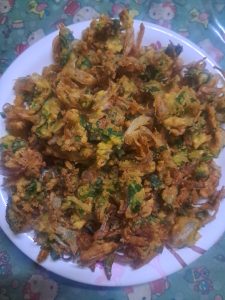 This pakoda / fritters is prepared with very healthy greens – palak / spinach. Palak is full of health benefits. Common recipe in which it is used is dal preparation.
